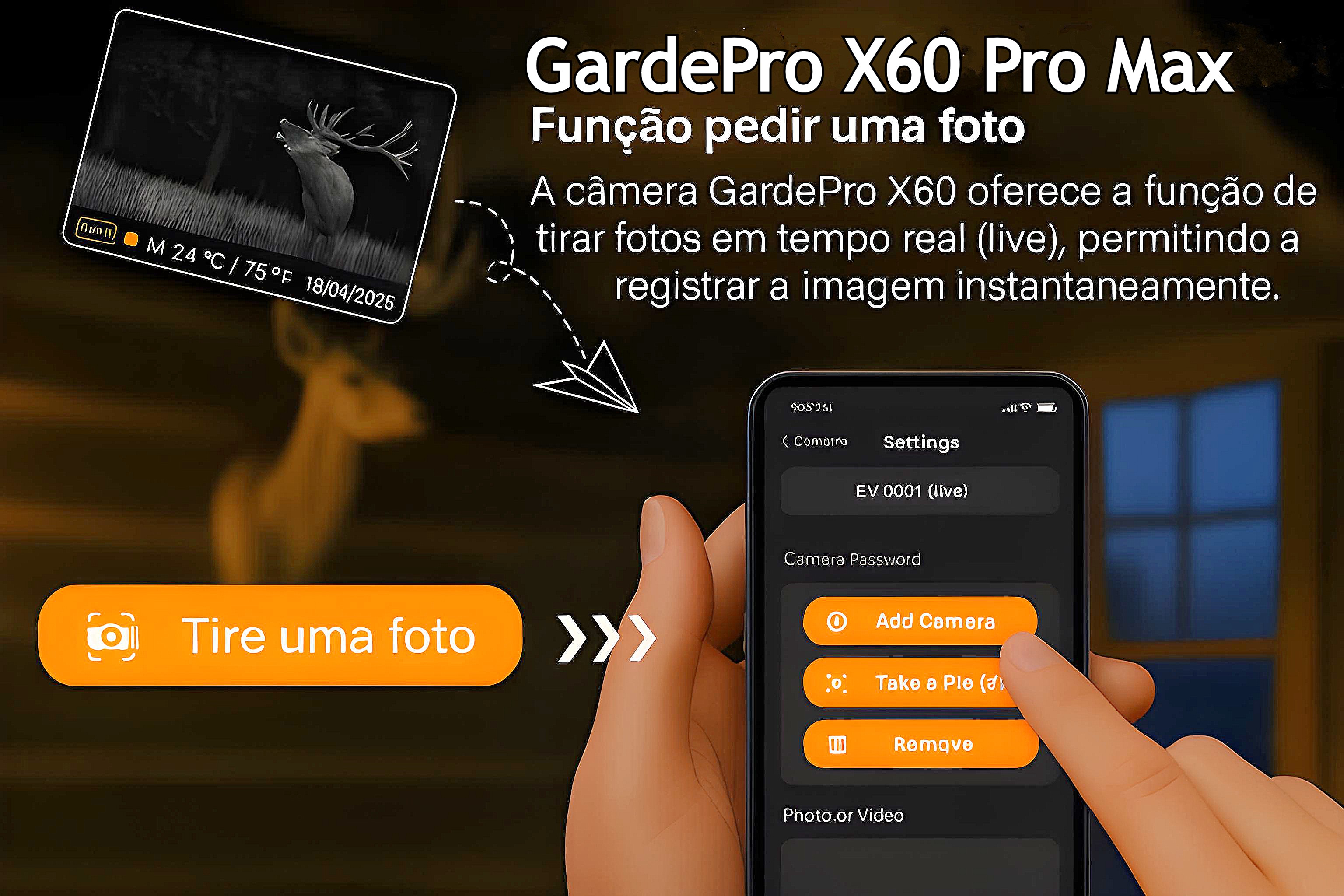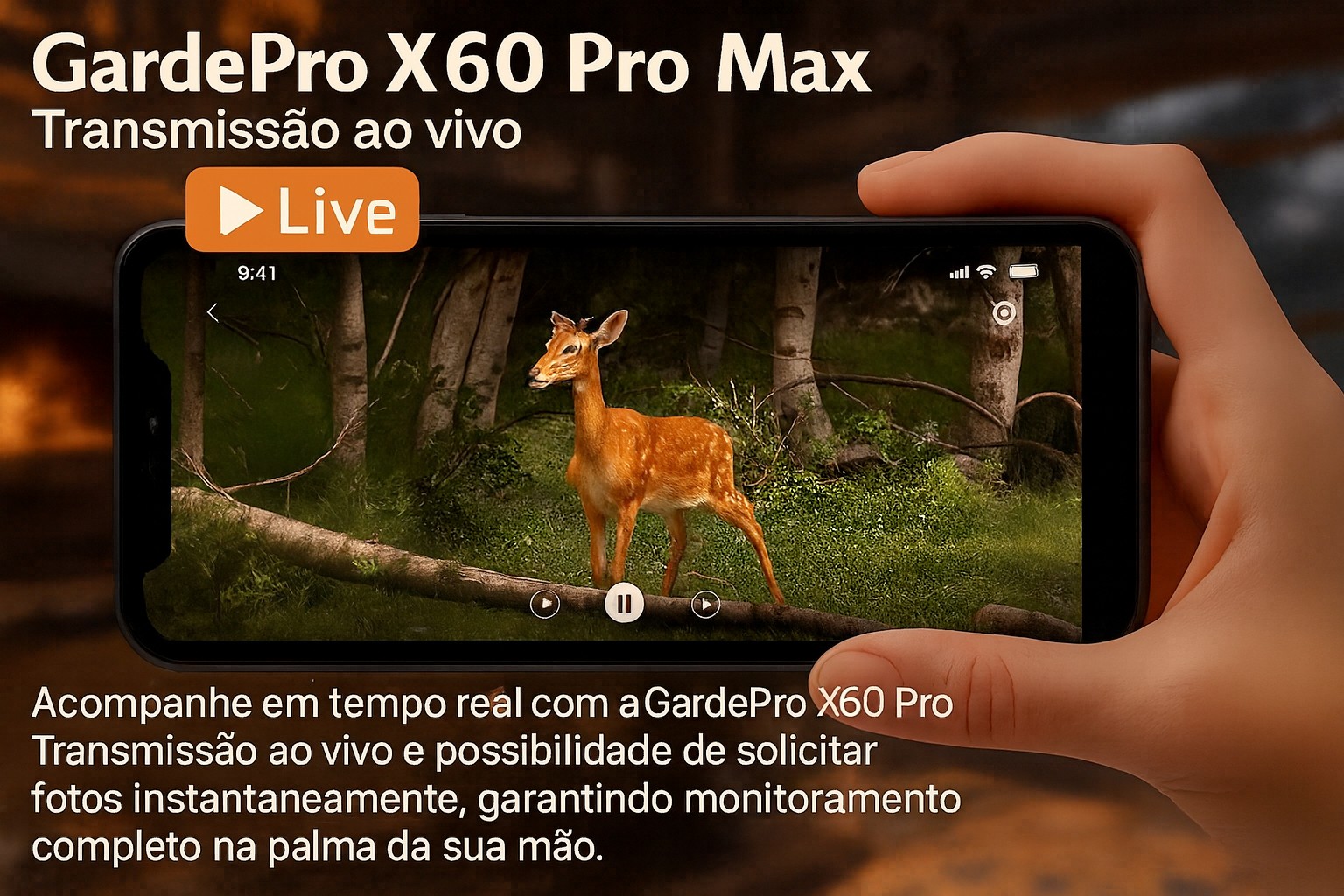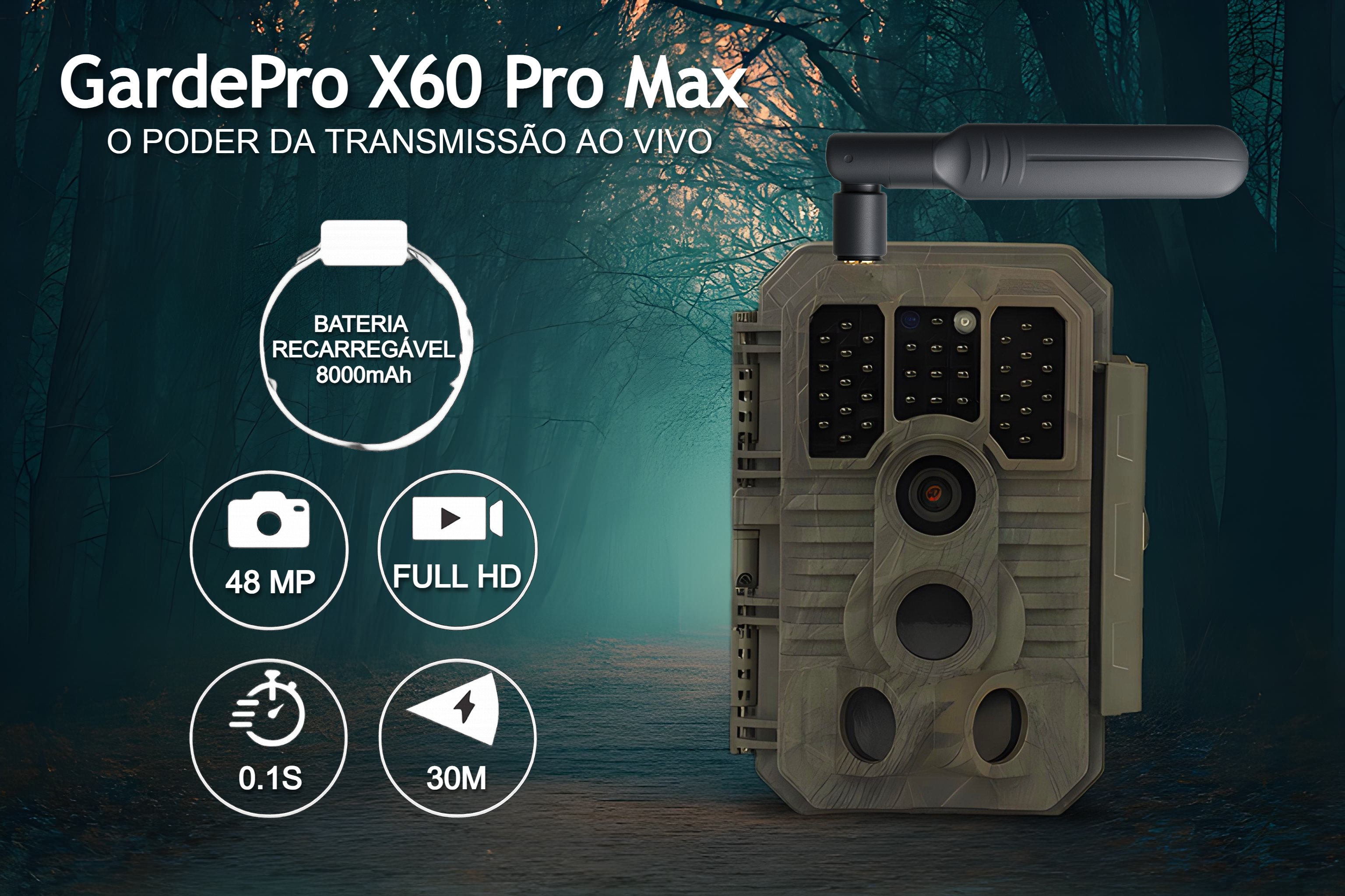Câmera GardePro X60 Pro Max com bateria aplicação e transmissão em direto