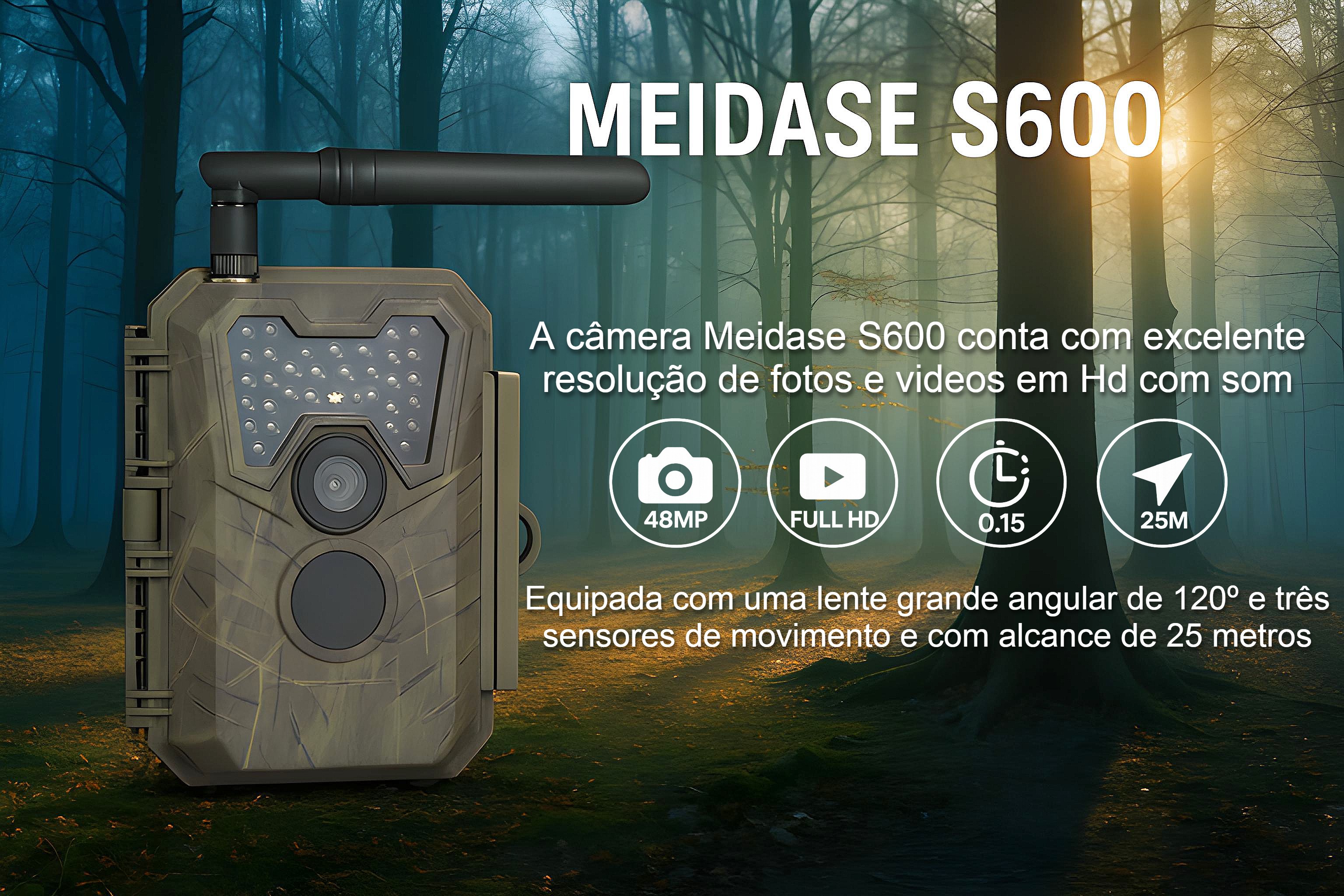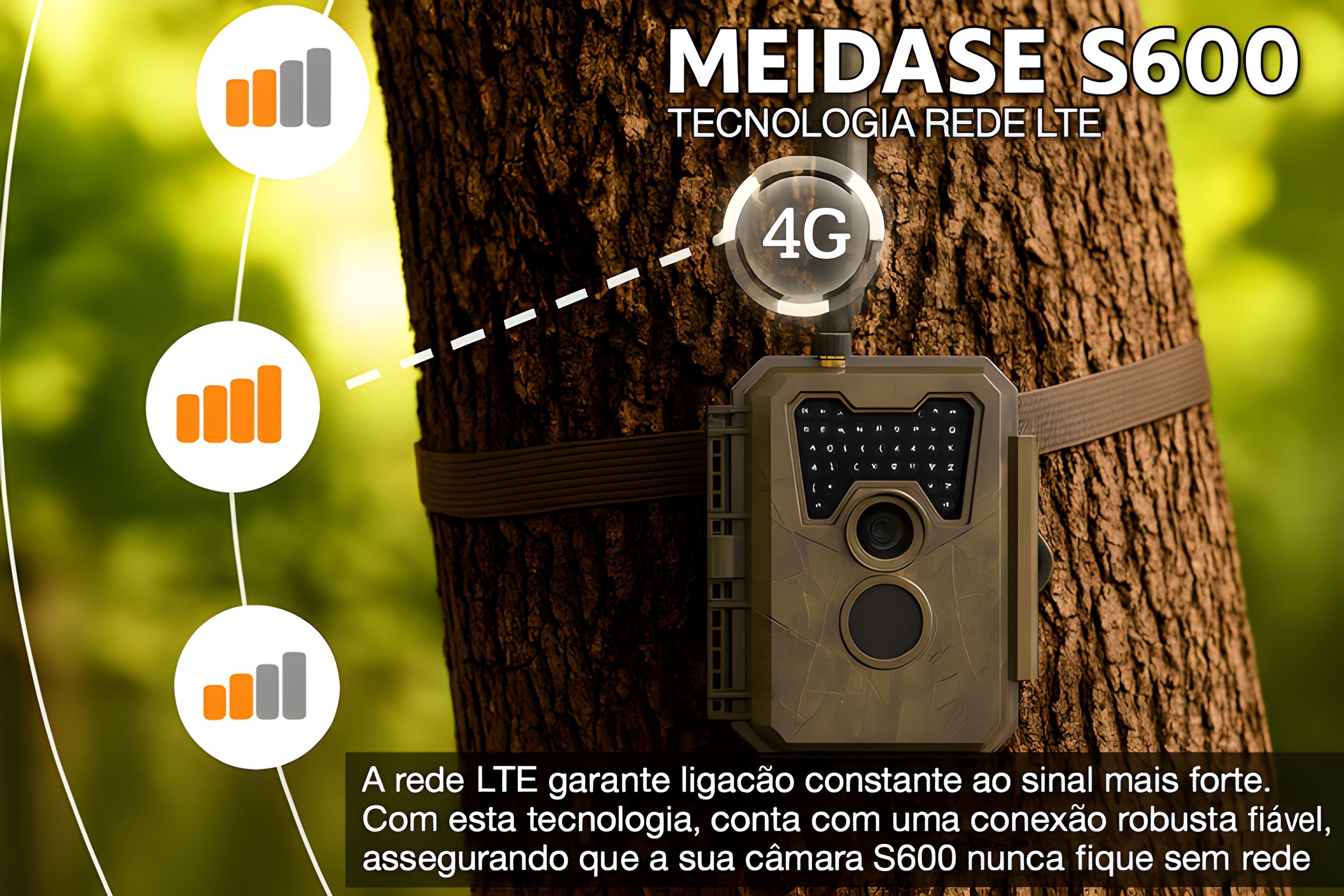 Câmera Meidase S600 LTE com aplicação para o telemóvel e envio de fotos e vídeos