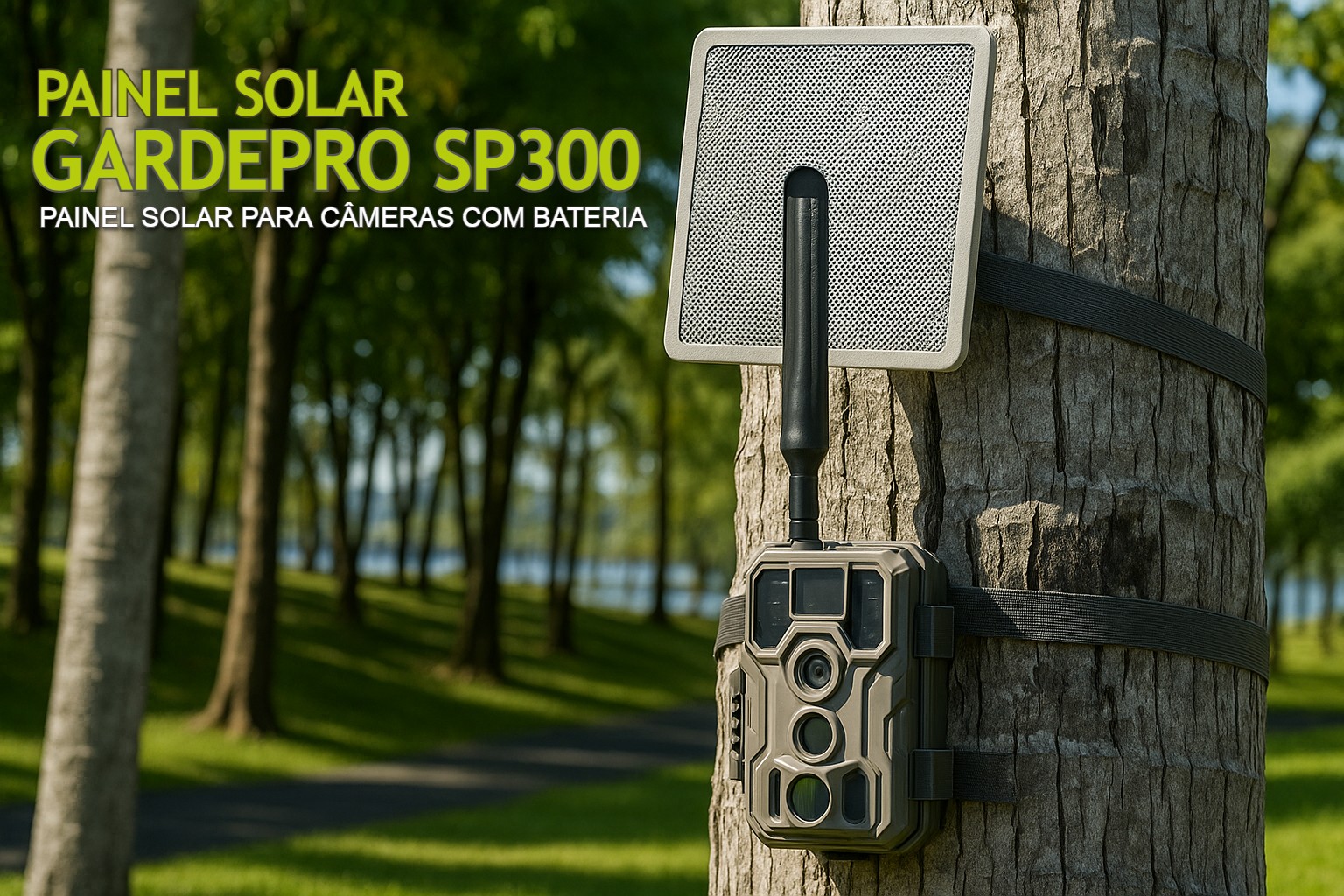 • O painel solar GardePro SP300 é compatível exclusivamente com câmaras que possuem bateria. O SP300 não dispõe de uma bateria interna, funcionando ao carregar diretamente a bateria da câmara, o que resulta num desempenho significativamente superior. Com este painel, pode esquecer as preocupações de carregar ou substituir baterias ao longo do ano. O acessório ideal para deixar de lado as pilhas de uma vez por todas.