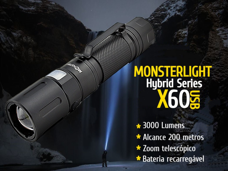 Modos de funcionamento: alto, médio, fraco, pisca e SOS